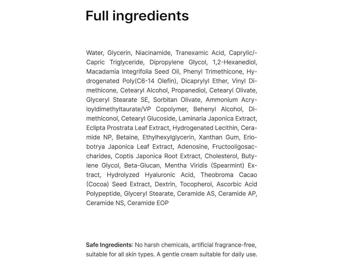 Centella Asiatica Extract: Soothes and strengthens sensitive skin.