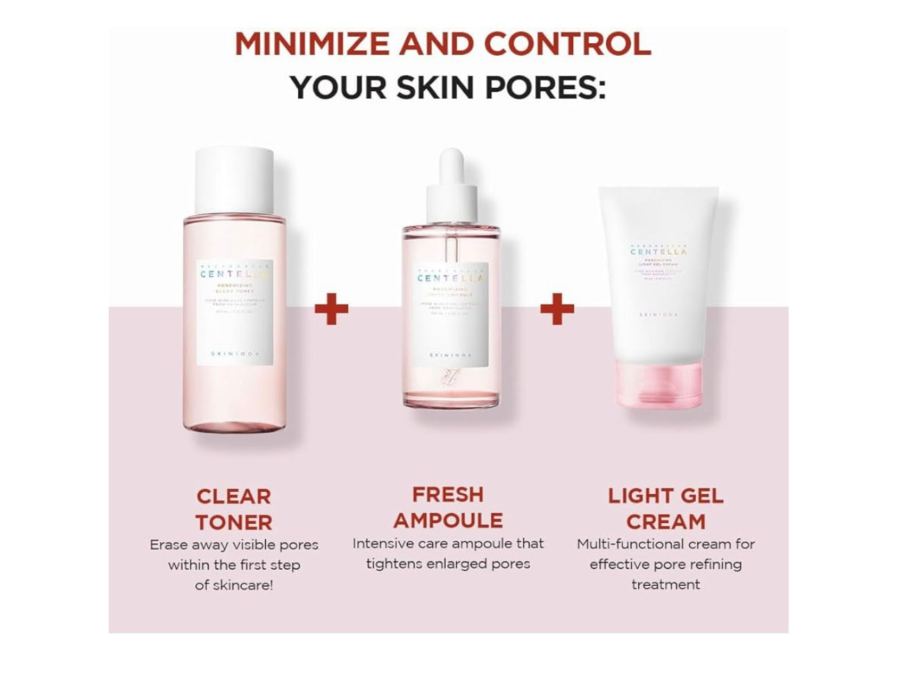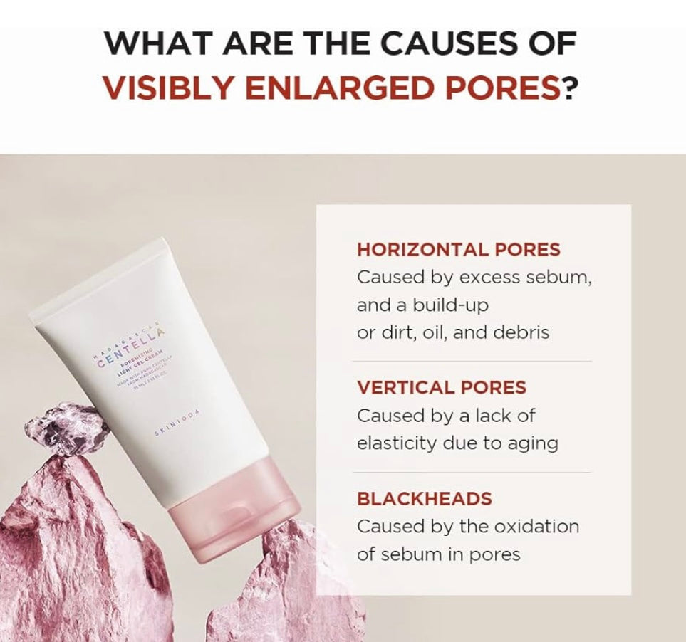 SKIN1004 Madagascar Centella Poremizing Light Gel Cream is a refreshing lightweight moisturizer designed to hydrate, soothe, and refine pores without heaviness. Enriched with Madagascar Centella Asiatica extract and Pink Himalayan Salt, this gel cream helps calm sensitive skin, regulate excess sebum, and remove pore impurities for a smoother, clearer complexion. Infused with Niacinamide, Aloe Vera, and Hyaluronic Acid, it delivers lasting hydration while brightening and strengthening the skin barrier. Its cooling texture absorbs quickly, leaving skin soft, dewy, and balanced — perfect for daily use in hot or humid climates