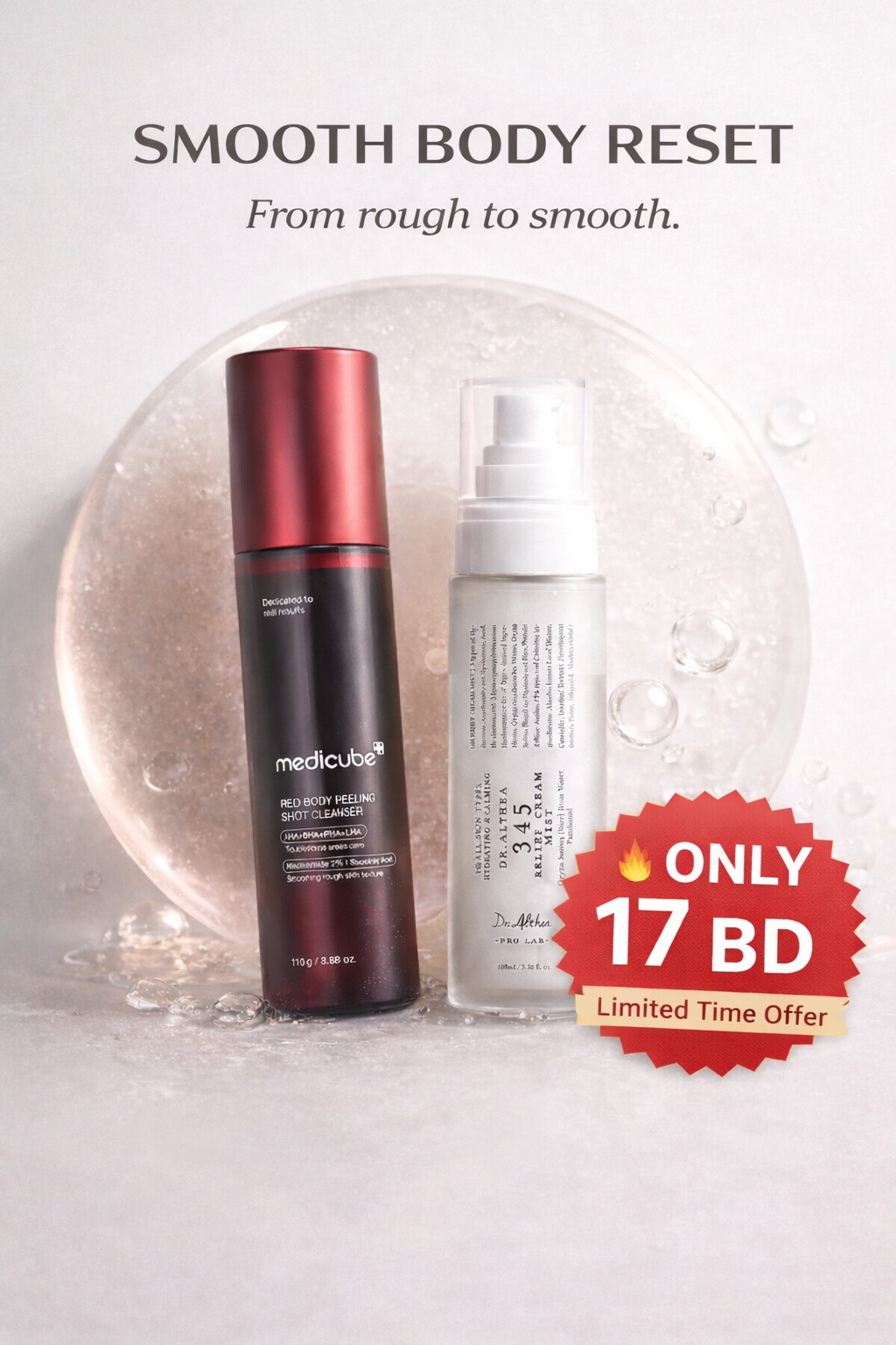 A complete body-care duo designed to exfoliate, smooth, and soothe rough, bumpy skin — all in one simple routine.